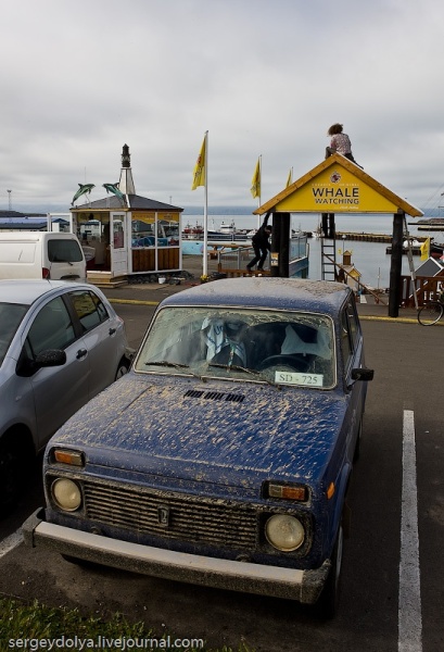 С утра погода была, как обычно, паршивая. Вечером нам предстояло наблюдать в открытом океане за китами, и я очень надеялся, что она улучшится. Мы ночевали в небольшом городке Seydisfjordur с гигантским населением в 750 человек. Вообще, во всей Исландии живет чуть больше 300 000 человек. Из них 60% населения живет в Рейкьявике и его окрестностях. При этом Рейкьявик по площади равен четверти площади Москвы. Все постройки двух-трехэтажные. Город словно размазан по огромному лавовому полю.