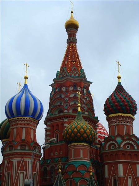 Собор Покрова, что на Рву, также называемый Храм Василия Блаженного - православный храм, расположенный на Красной площади в Москве. До семнадцатого века обычно назывался Троицким, так как первоначальный деревянный храм был посвящён Святой Троице. Куполов всего 10. Девять куполов над храмом, и один купол над колокольней.