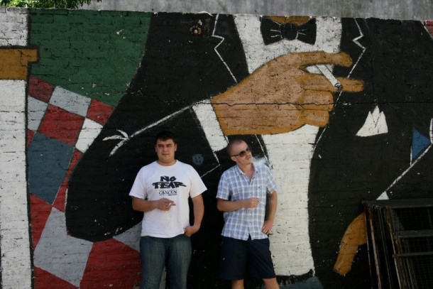 Сам по себе район Бока очень интересен. Почти все дома сделаны из сворованных из порта кусков металла. Там как краску тоже покупать здесь не принято, а украсть много за раз не получается - каждый дом покрашен сразу в три-четыре цвета. А из фэйковых окон высовываются фэйковые национальные герои. В стране с героями очень удобно. Есть три положительных: Марадонна, Борхес и Эва Перон. Один спорный - Че. Ну и один местный, чье имя никому не интересно. Он освободил Аргентину от Испанского ига, за что его теперь печатают на монетах...